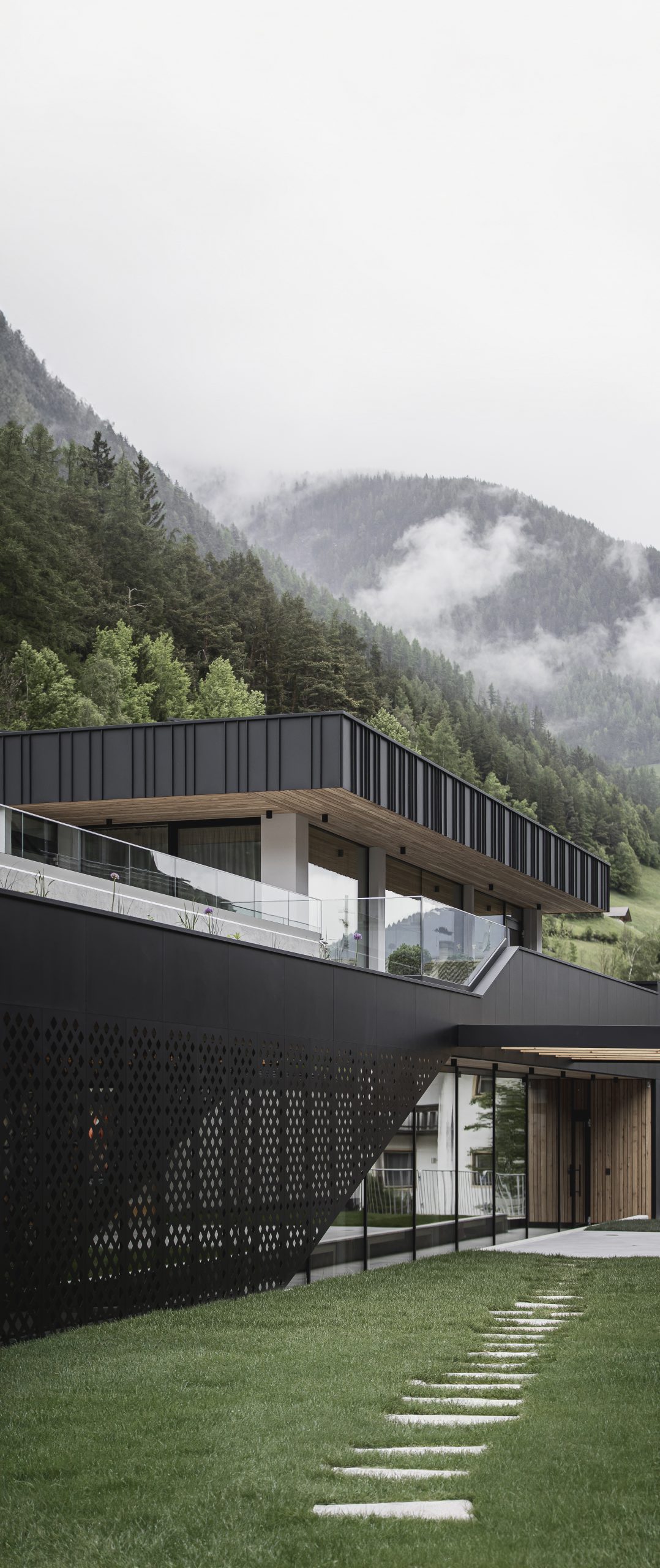 Die Erweiterung des Wohnhauses, überzeugt durch modernes Design, lichtdurchflutete Räume und eine großzügige Dachterrasse mit traumhaftem Ausblick auf die umliegende Apfelwiese.